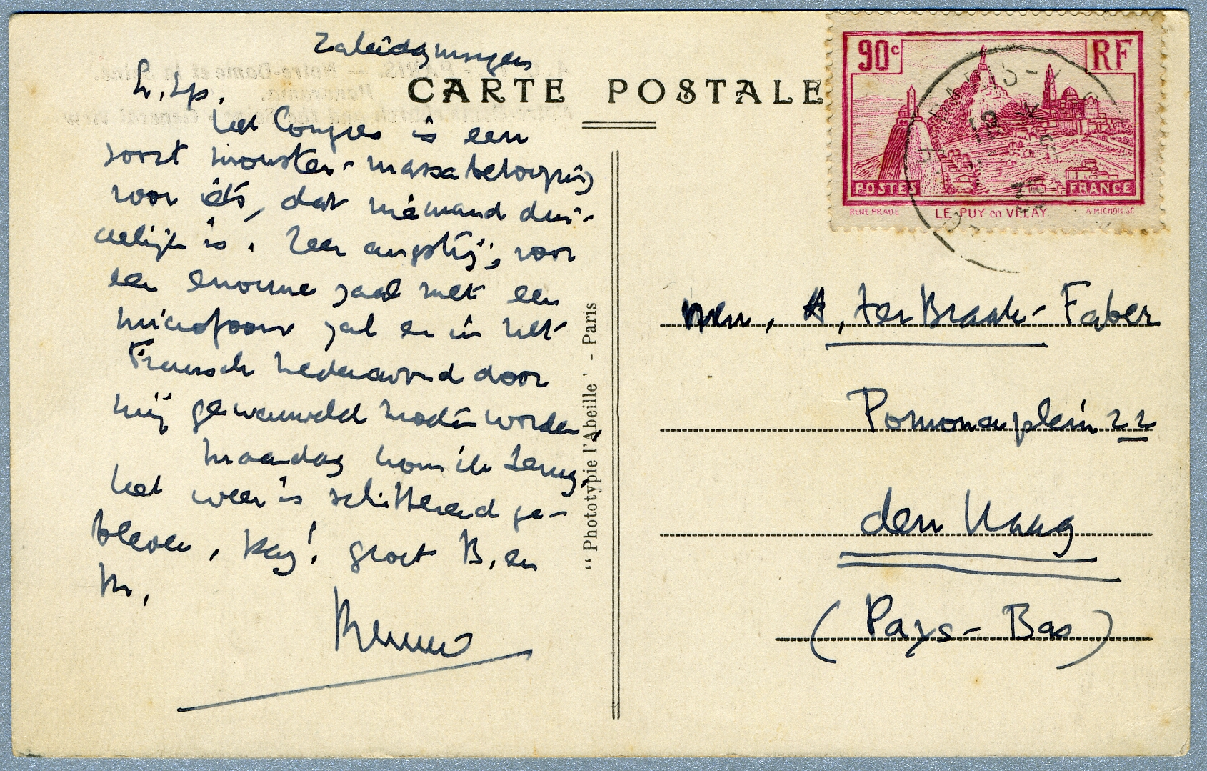 Het Congres is een soort monster-massabetooging voor iets, dat niemand duidelijk is. Zeer angstig, voor een enorme zaal met een microfoon zal er in het Fransch hedenavond door mij gewauweld moeten worden.