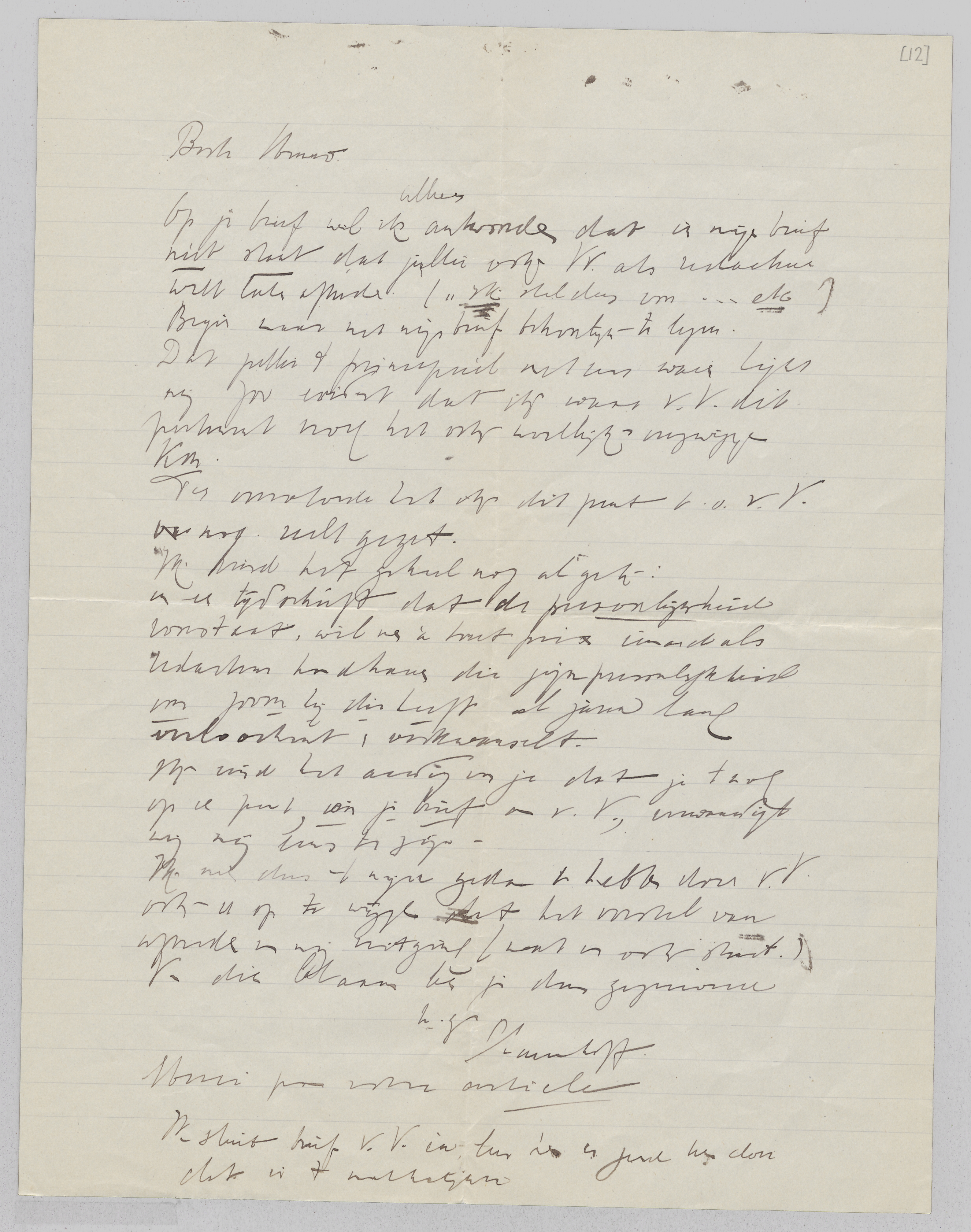 Dat jullie 't principieel met [mij] eens waren lijkt mij zoo evident dat ik waar v.V. dit pertinent vroeg het ook moeilijk verzwijgen kon.
