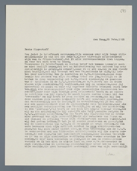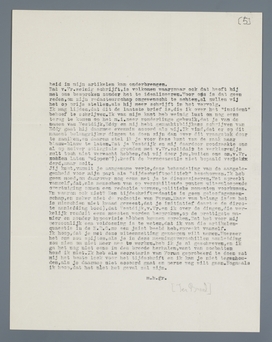 Ik mag lijden, dat dit de laatste brief is, die ik over het ‘incident’ behoef te schrijven. Ik van mijn kant heb weinig lust om nog eens terug te komen op het m.i. zeer zonderlinge gebruik, dat je van de namen van Vestdijk. Eddy en mij hebt gemaakt; blijkens schrijven van Eddy gaat hij daarmee evenmin accoord als wij. Ik vind, dat er op dit moment belangrijker dingen te doen zijn dan over dit vraagstuk door te zaniken, en daarom stel ik je voor deze kant van de zaak maar blauw-blauw te laten. Dat je Vestdijk en mij daardoor noodzaakte ons al op zuivere collegiale gronden met v.Vr. solidair te verklaren (je zult toch niet verwacht hebben, dat wij door jou, buiten ons om, v.Vr. zouden laten ‘wippen’?), heeft de kernquaestie niet bepaald verhelderd, maar soit.