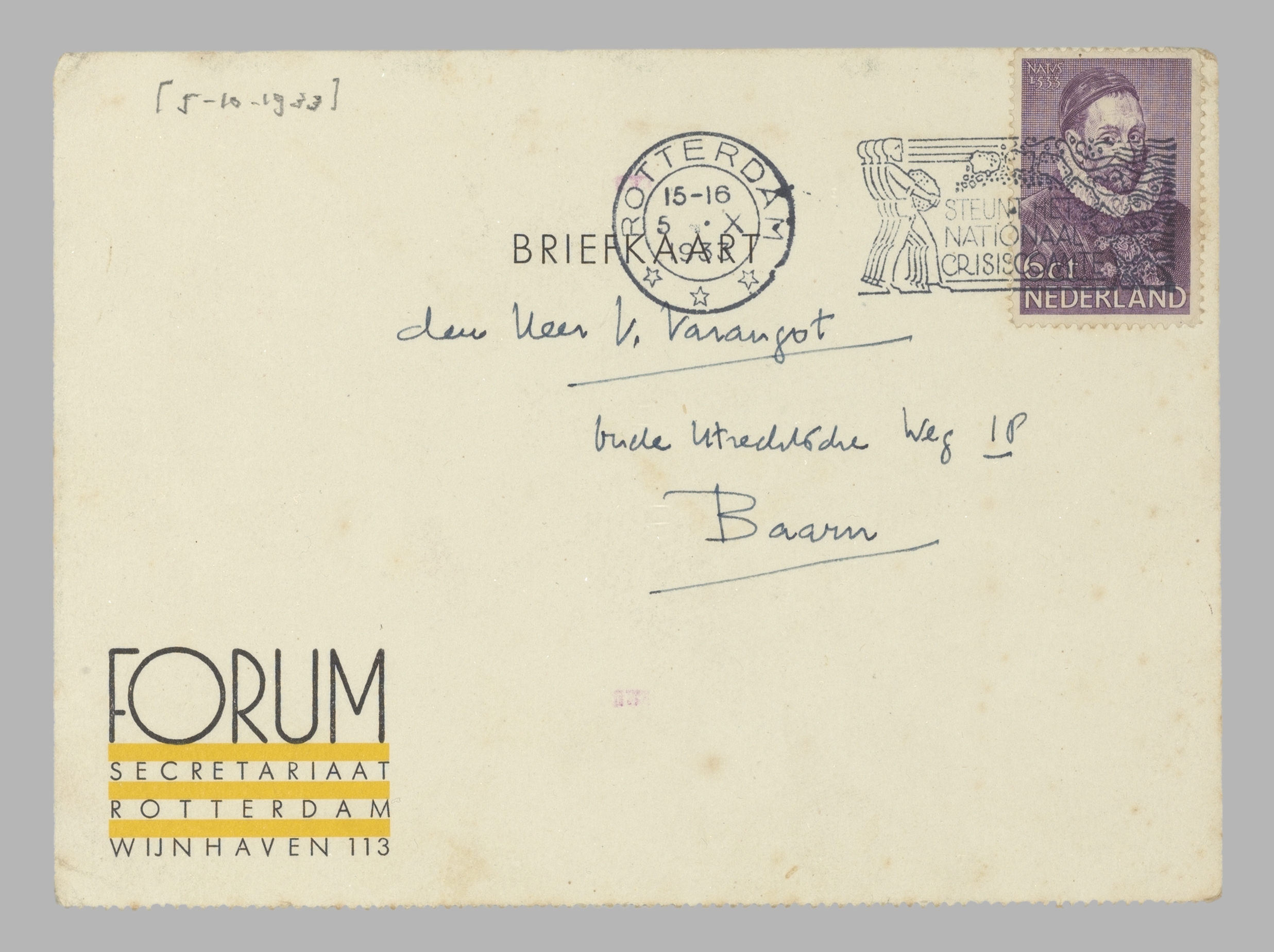 Je beide stukjes vond ik bijzonder aardig; ik heb ze (in de meening, dat je daar geen bezwaar tegen zoudt hebben) als I en II samengebracht onder den titel Illusie en ze naar mijn collega's van ‘Forum’ doorgezonden, met het voorstel, ze in Nov. nog te plaatsen. Ik verbeterde ook een enkele fout. Mocht je tegen een en ander protest aantekenen, dan hoor ik het wel.