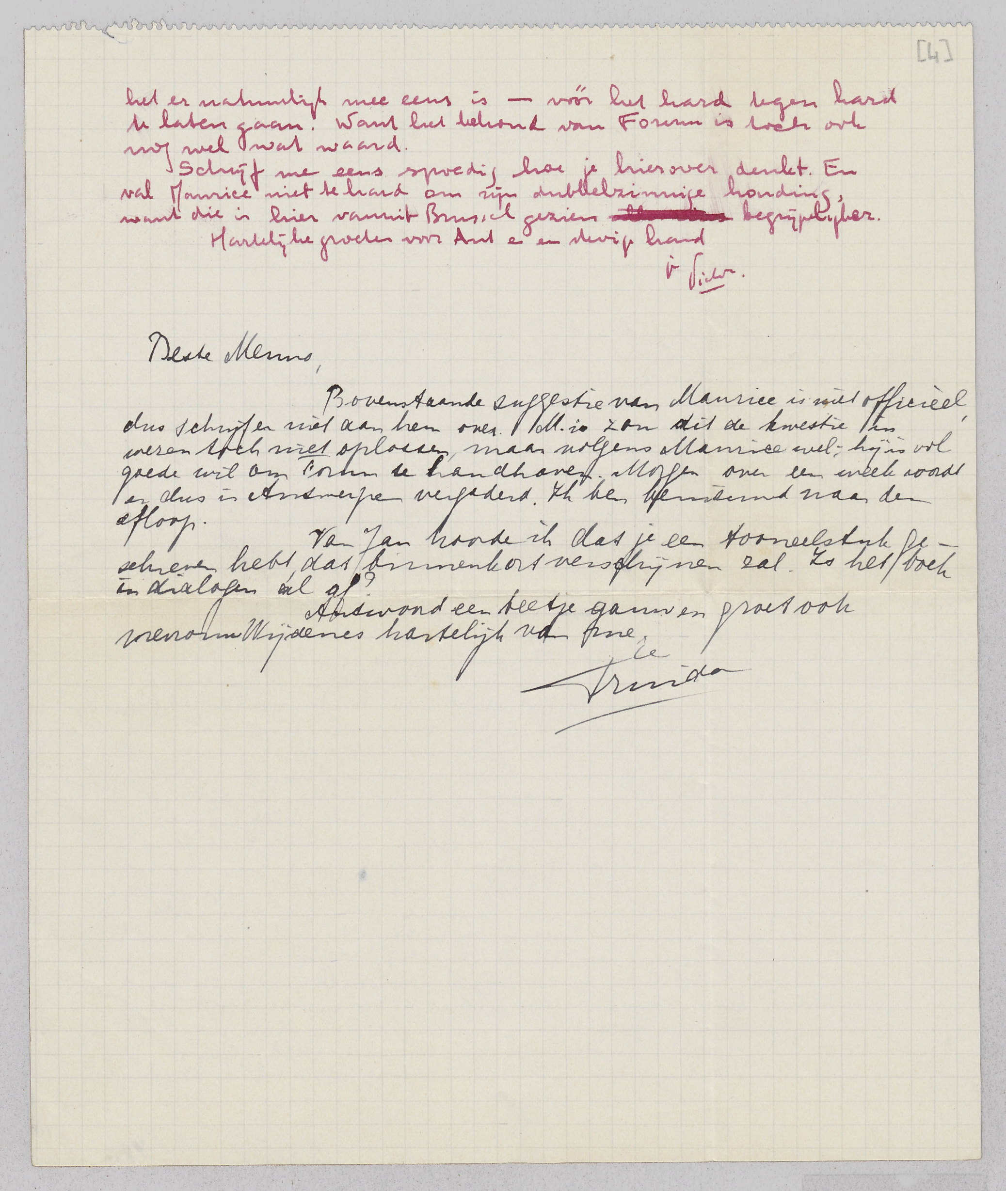Je begrijpt dat ik het zonde zou vinden om Virg. voor Holland verloren te laten gaan en dat ik niet graag zou instemmen met de suppressie ervan in Forum, wanneer ik niet de zekerheid had, dat het op een àndere wijze gepubliceerd werd. Maar tenslotte lijkt mij dit nog een laatste voorstel als Nijgh het er natuurlijk mee eens is - vóór het hard tegen hard te laten gaan. Want het behoud van Forum is toch ook nog wel wat waard.
