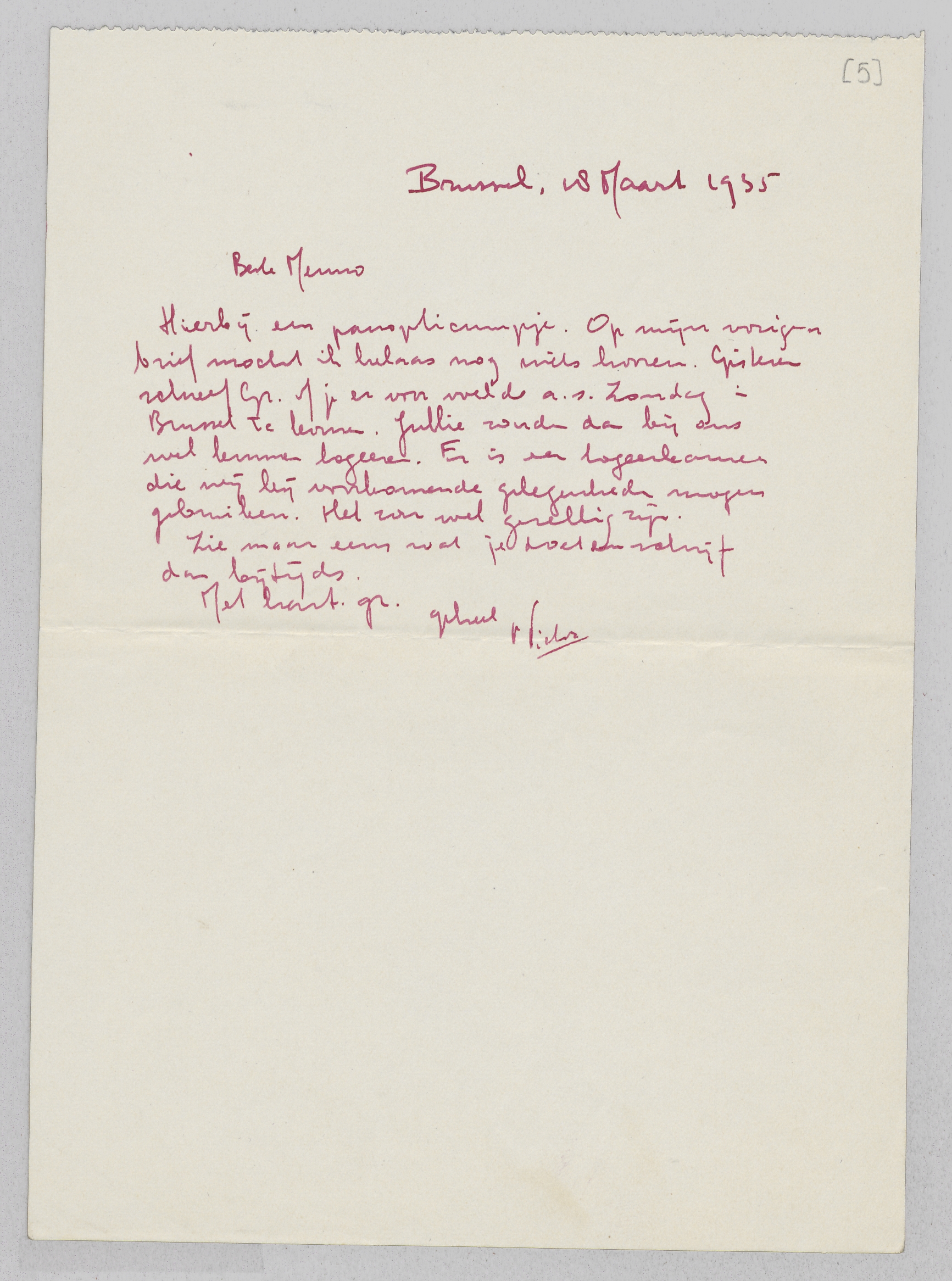 Hierbij een panopticumpje. Op mijn vorige brief mocht ik helaas nog niets hooren. Gisteren schreef Gr. of je er voor voelde a.s. Zondag in Brussel te komen. Jullie zouden dan bij ons wel kunnen logeeren. Er is een logeerkamer die wij bij voorkomende gelegenheden mogen gebruiken. Het zou wel gezellig zijn.