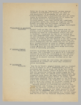 6e dat hij zich aan o.a. het Hollandsch Weekblad en Het Vaderland heeft verkocht, d.w.z. voor geld er stukken in schrijft die zijn persoonlijke meening niet weerspiegelen, ja zelfs het tegenovergestelde schrijft van wat zijn opvatting is. Misschien is de gedeeltelijke anonymiteit een verlichtende omstandigheid tegenover het publiek, maar niet tegenover de redactie die immers den heer Greshoff aanstelt om zijn meening over toneelstukken, tentoonstellingen enz. den lezers voor te zetten en niet die van een willekeurige anonymicus.
