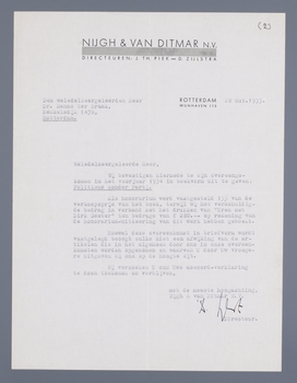 Als honorarium werd vastgesteld 15% van de verkoopsprijs van het boek, terwijl wij het verschuldigde bedrag in verband met het drukken van ‘Uren met Dirk Coster’ ten bedrage van f.280,- op rekening van de honorarium-uitkeering van dit werk hebben geboekt.
