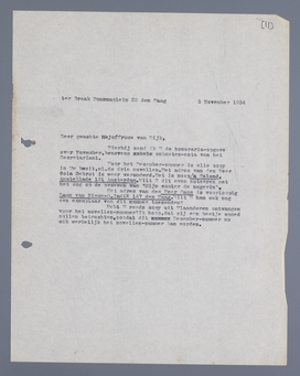 Hierbij zend ik U de honoraria-opgave over November, benevens onkosten-nota van het Secretariaat.