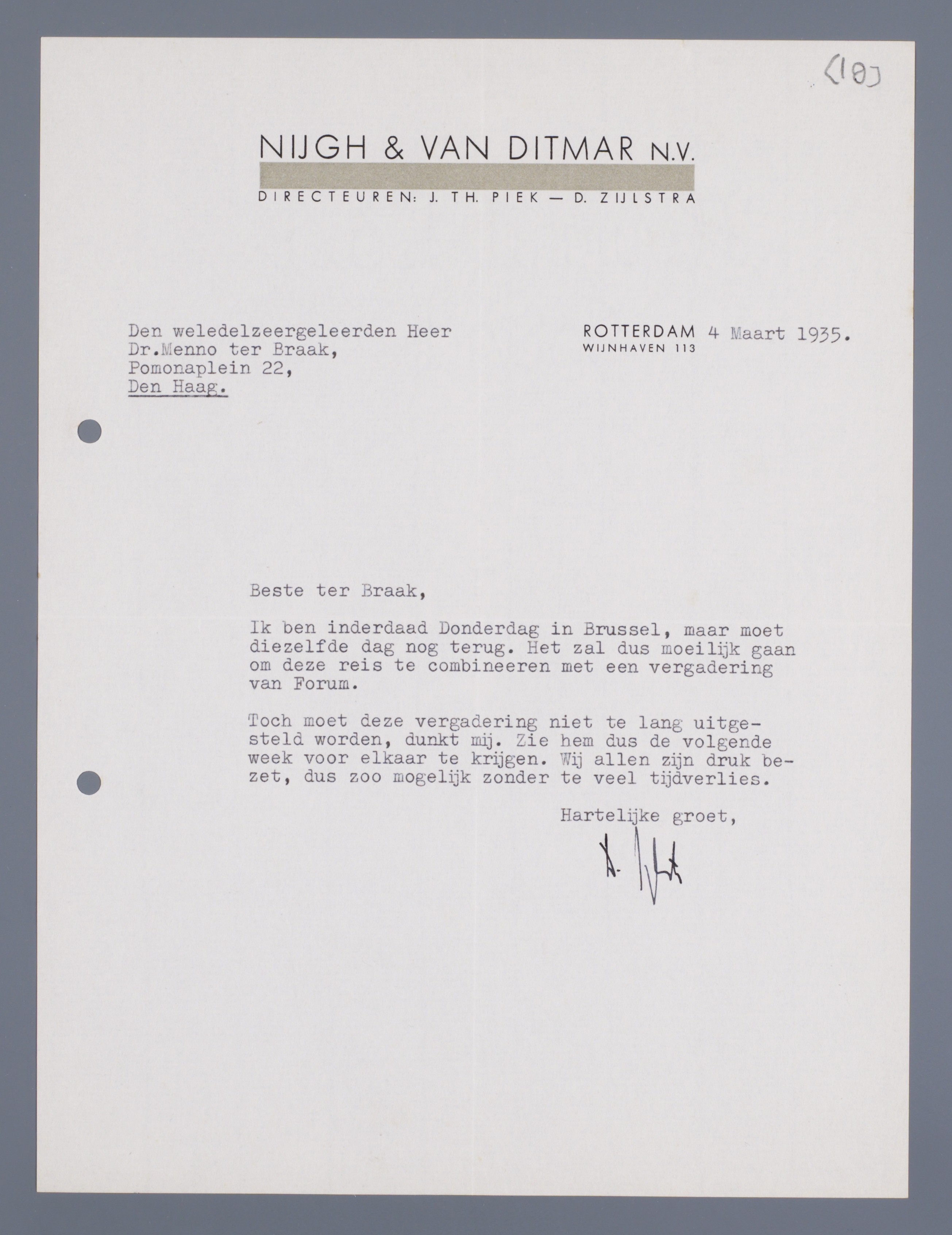 Toch moet deze vergadering niet te lang uitgesteld worden, dunkt mij. Zie hem dus de volgende week voor elkaar te krijgen. Wij allen zijn druk bezet, dus zoo mogelijke zonder te veel tijdverlies.