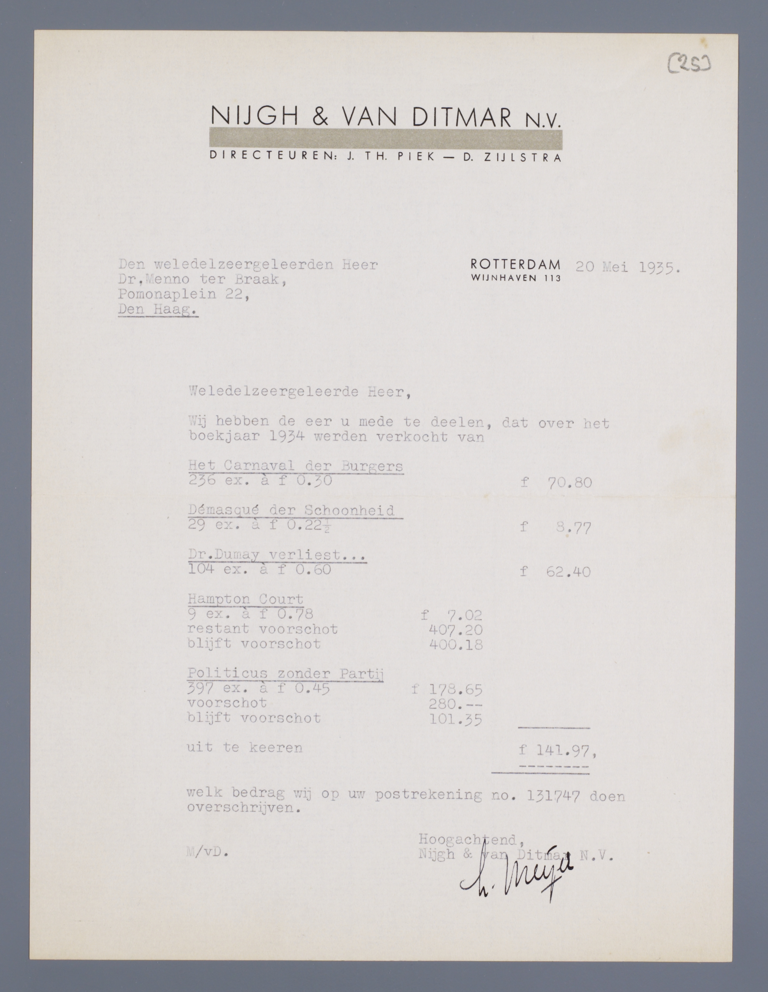 Wij hebben de eer u mede te deelen, dat over het boekjaar 1934 werden verkocht van