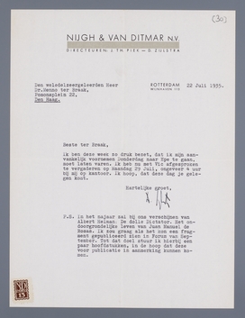 Ik ben deze week zo druk bezet, dat ik mijn aanvankelijk voornemen Donderdag naar Epe te gaan, moet laten varen. Ik heb nu met Vic afgesproken te vergaderen op Maandag 29 Juli, ongeveer 4 uur bij mij op kantoor. Ik hoop, dat deze dag je gelegen komt.