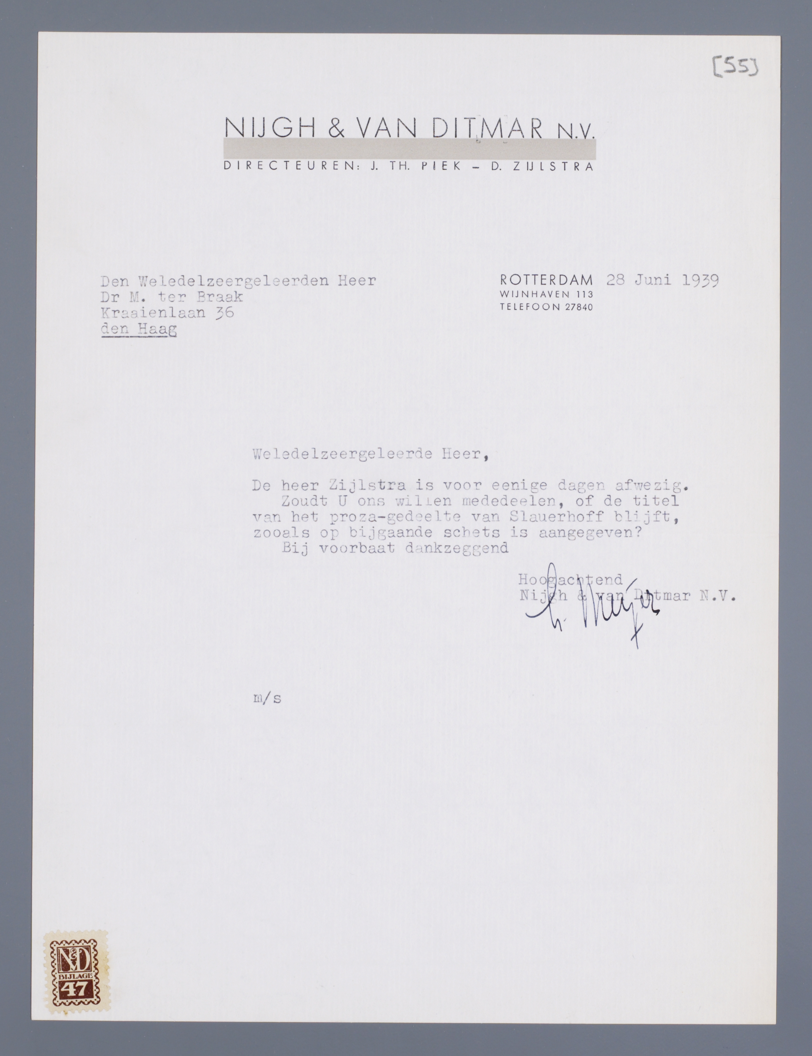 Zoudt u ons willen mededeelen of de titel van het proza-gedeelte van Slauerhoff blijft, zooals op bijgaande schets is aangegeven?