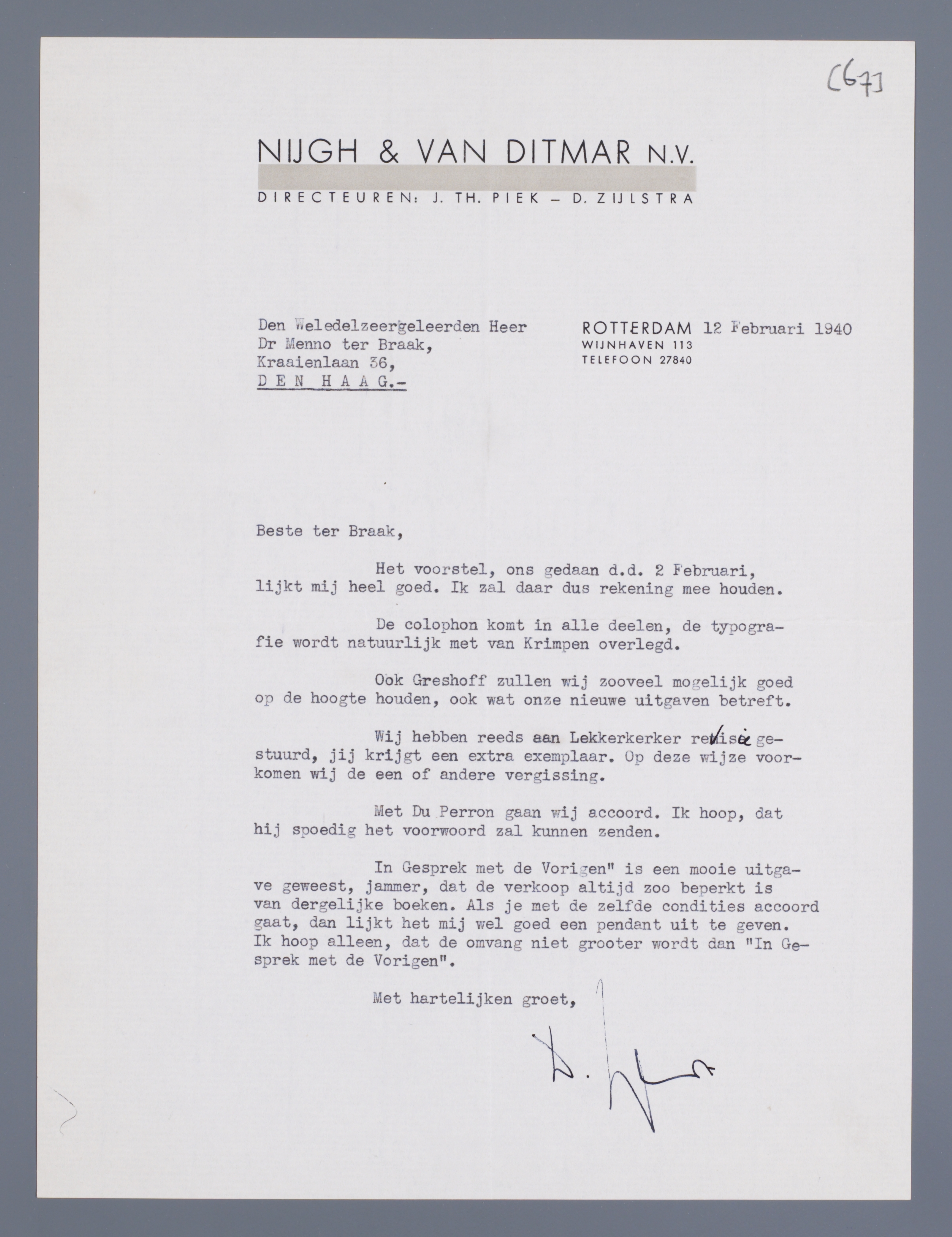 Met Du Perron gaan wij accoord. Ik hoop, dat hij spoedig het voorwoord zal kunnen zenden.