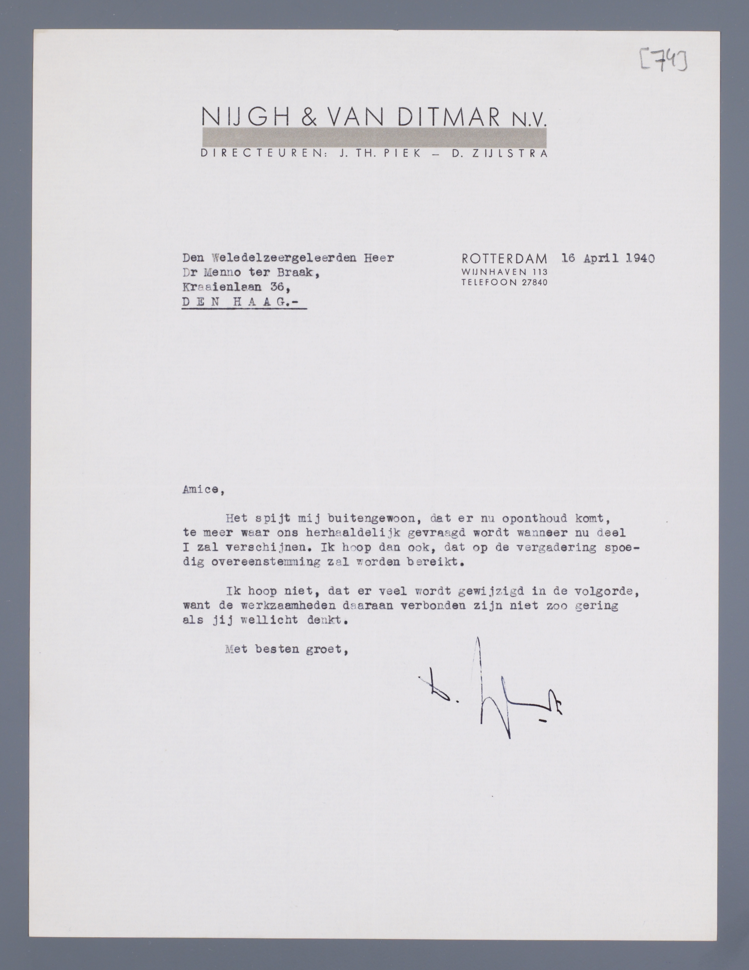 Het spijt mij buitengewoon, dat er nu oponthoud komt, temeer waar ons herhaaldelijk gevraagd wordt wanneer nu deel I zal verschijnen. Ik hoop dan ook, dat op de vergadering spoedig overeenstemming zal worden bereikt.