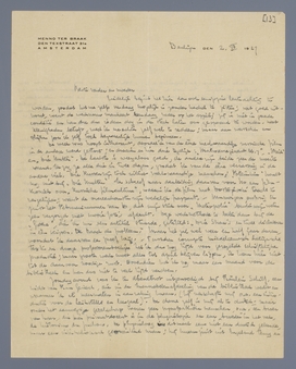 Naar aanleiding van de laatste brief: dank voor de ‘Stroom’, die mij tenminste als normaal beschouwt en verder vrij onbevangen ‘normaal’ oordeelt, en voor Paradise Regained. - Bartelink heb ik een wensch voor beterschap gezonden. Zoek ook Jo Planten nog eens op en wensch haar ook uit mijn naam beterschap van de griep.