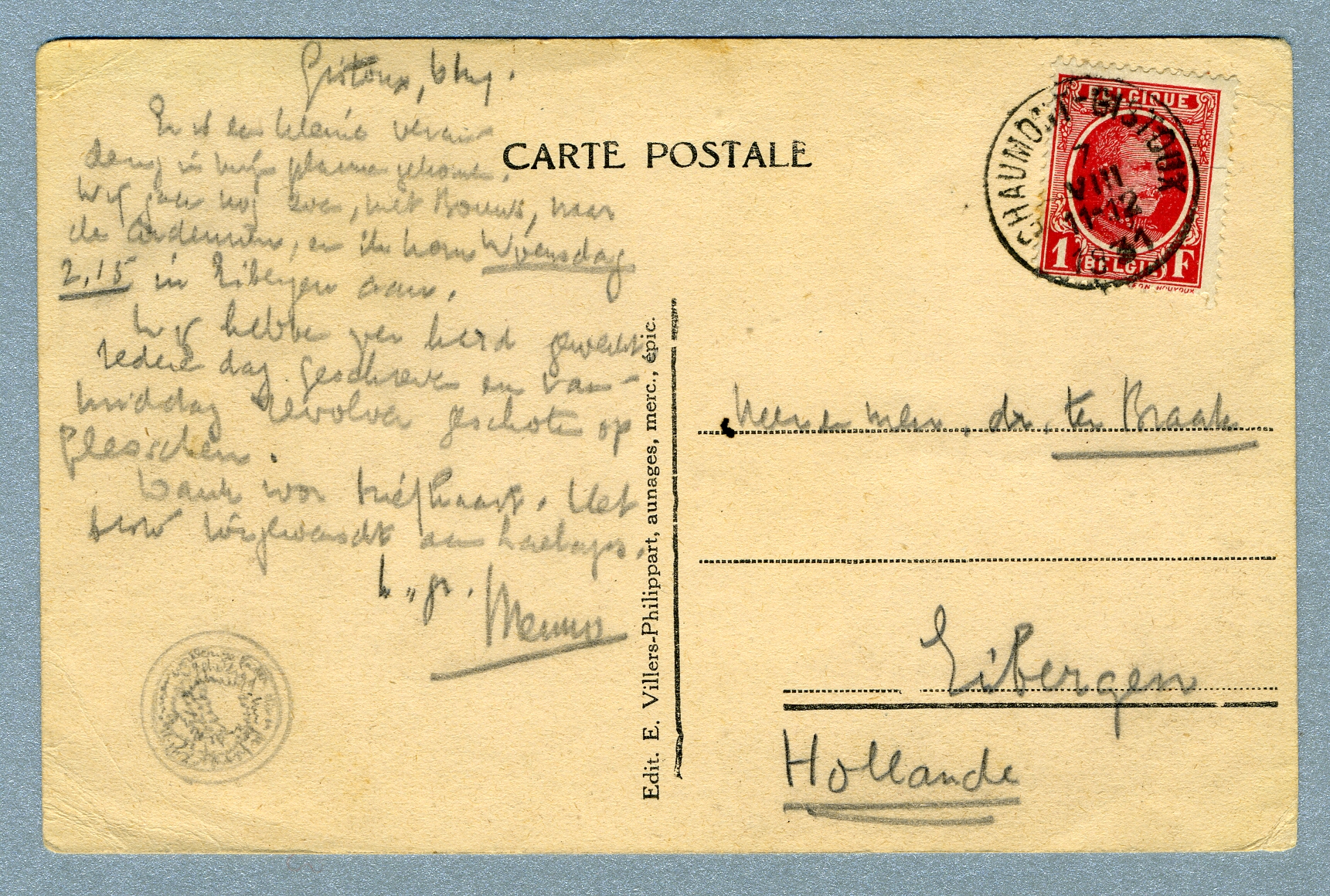 Dank voor briefkaart. Het beste toegewenscht aan Laelaps.