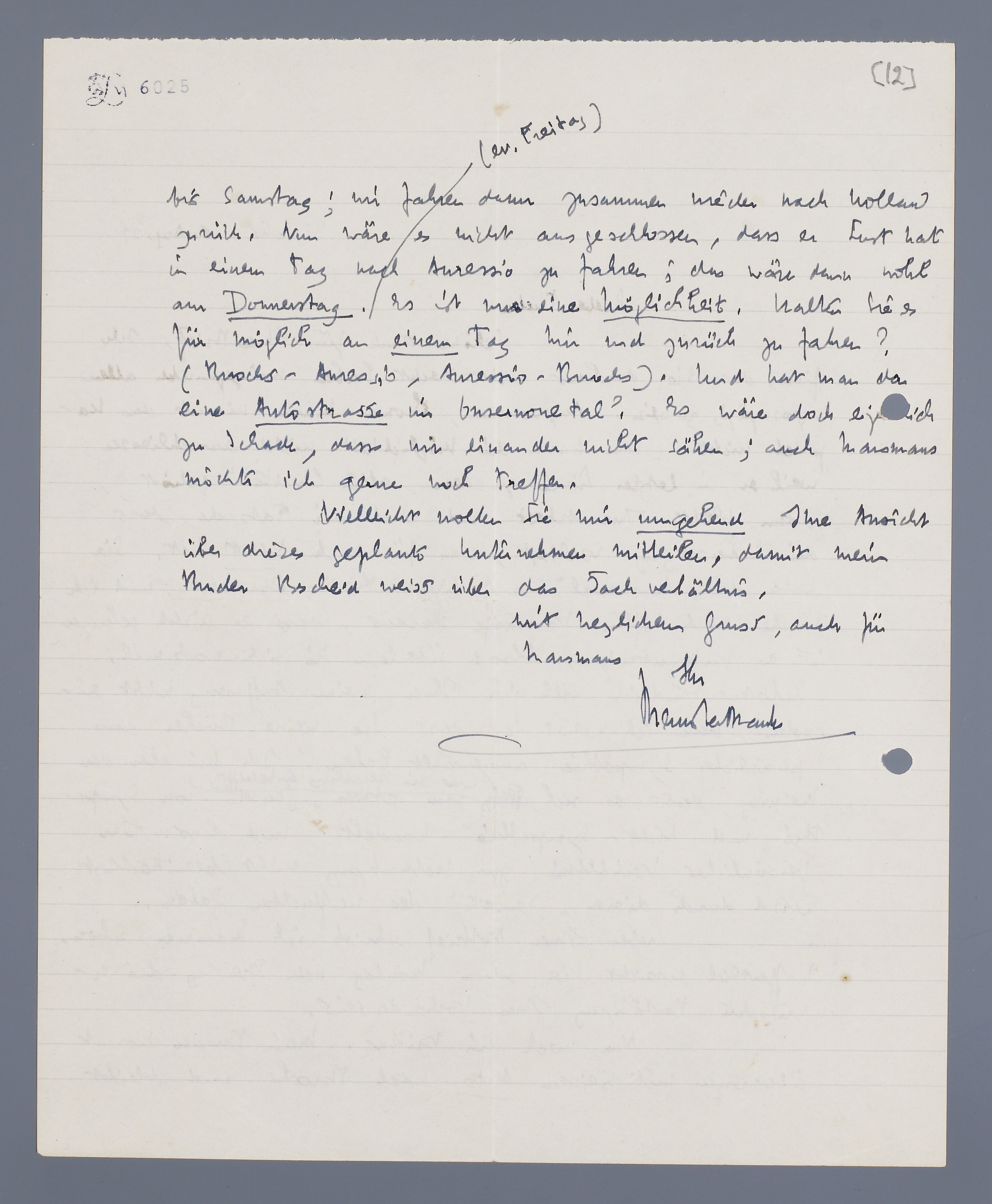 Ueber Ihnen Notbrief schrieb ich Marsman schon. Hoffentlich erreicht Sie schon Montag oder Dienstag die erwünschte Bestätigung Ihres Vorhandenseins.