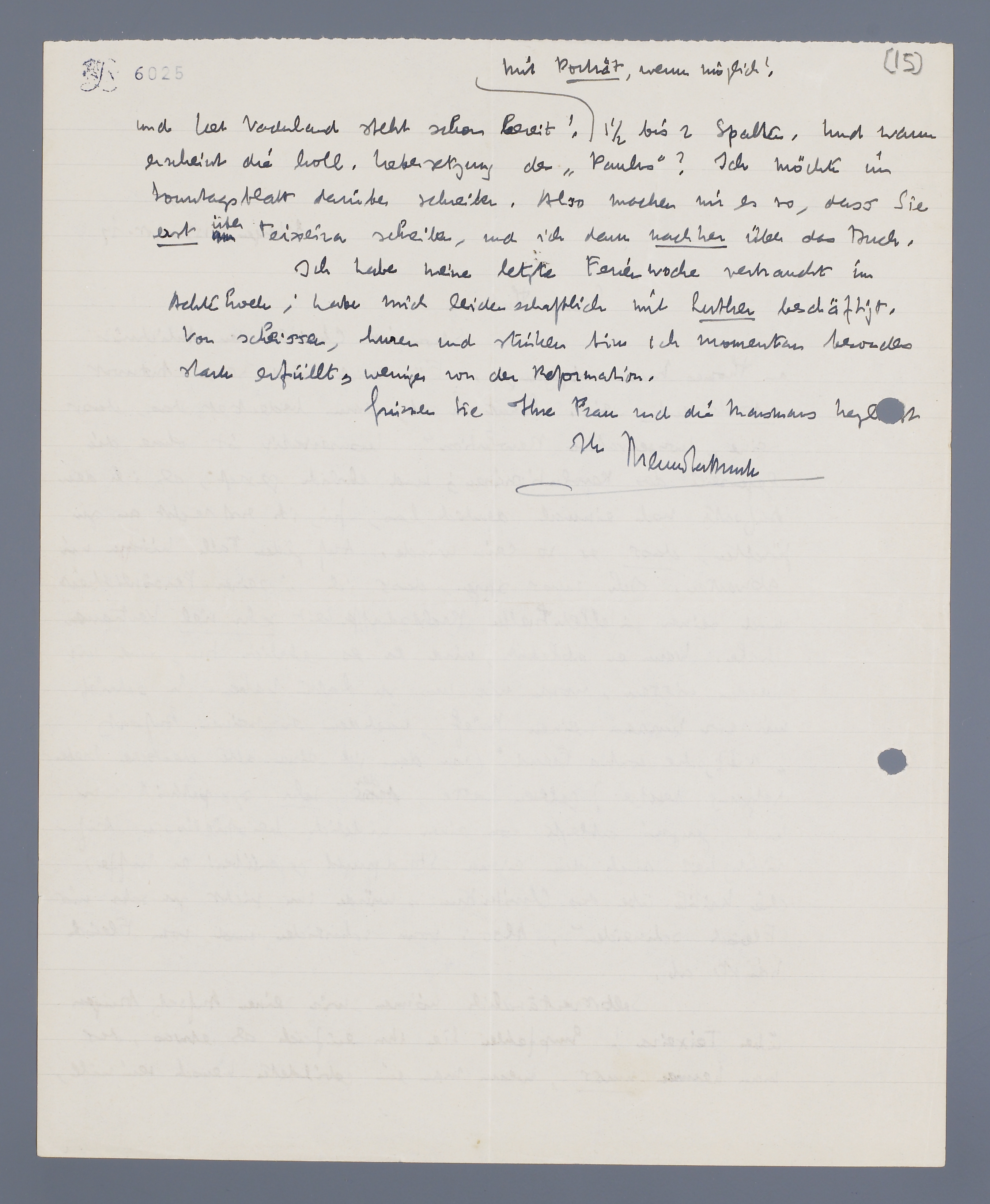 Ich habe meine letzte Ferienwoche verbraucht im Achterhoek; habe mich leidenschaftlich mit Luther beschäftigt. Von scheissen, [huren] und stinken bin ich momentan besonders stark erfüllt, weniger von der Reformation.