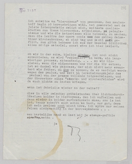 ich schwitze am ‘hieronymus’ von pascoaes, den meulenhoff begin 39 herausbringen will. het geworstel met de juiste interpretatie zwingt mich, weiteste quellenstudien zum thema hieronymus, arianismus, pelagianismus und wie die ketzerismen alle heissen, zu machen. dazu die lektüre der opera omnia des geilen dalmatiner kirchenbockes, so sind tag und nacht gefüllt. zum glück bekomme ich aus der baseler bibliothek alles nötige material, sonst wäre ich hier lakiert.