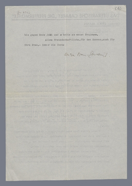 Alles Freundschaftliche, für den Sommer, auch für Ihre Frau,- immer die Ihre: