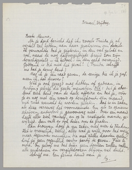 Na je kort bericht heb ik, zooals Truida je al verteld zal hebben, aan haar geschreven om details. Ik verwachtte dat je gisteren, in den val gelokt en wel, naast de nog halfvergiftigde bruid zou zijn terechtgesteld – ik bedoel: in den echt vereenigd. Goddank is dit niet het geval! (Truida schrijft me dat je terug bent.)