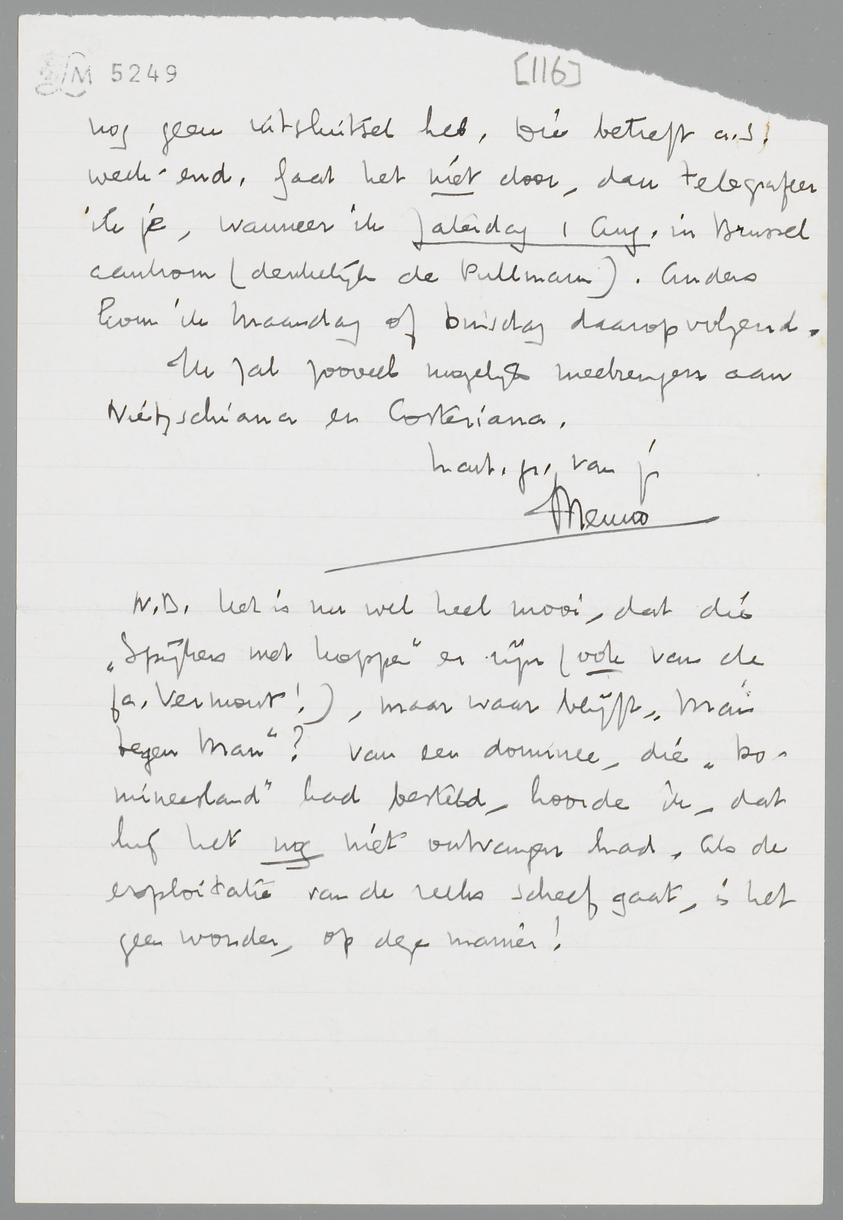 Ik zal zooveel mogelijk meebrengen aan Nietzschiana en Costeriana. Hart. gr. van je