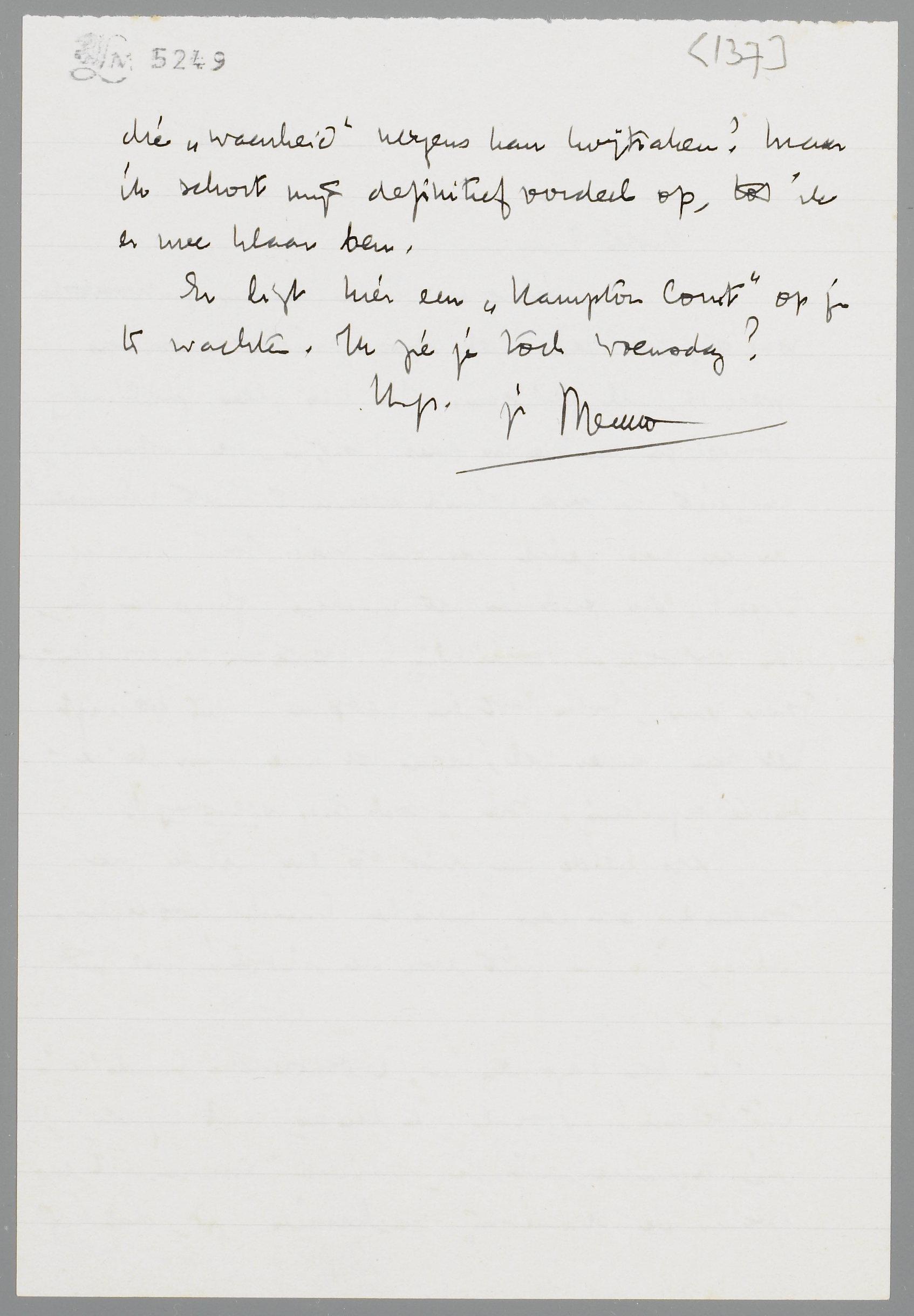 Er ligt hier een Hampton Court op je te wachten. Ik zie je toch Woensdag? Hart. gr. je