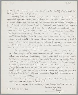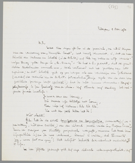 Zaterdag heb ik een lezing in Groningen gehouden (hetgeen tusschen haken een erg aardige stad is), met eenige voorproefjes uit het Démasqué, weswege twee heeren (muziekliefhebbers) demonstratief de zaal verlieten! Ik logeerde bij een kunstzinnige jood (een Twentsche jood, die alles ‘verdomd goed’ en ‘verdomd mooi’ vond); dat was vrij erg. Wist je, dat er een belangrijke groningsche bohême bestond? Er is zelfs een vermakelijk type bij, waarover ik je wel eens nader zal vertellen.