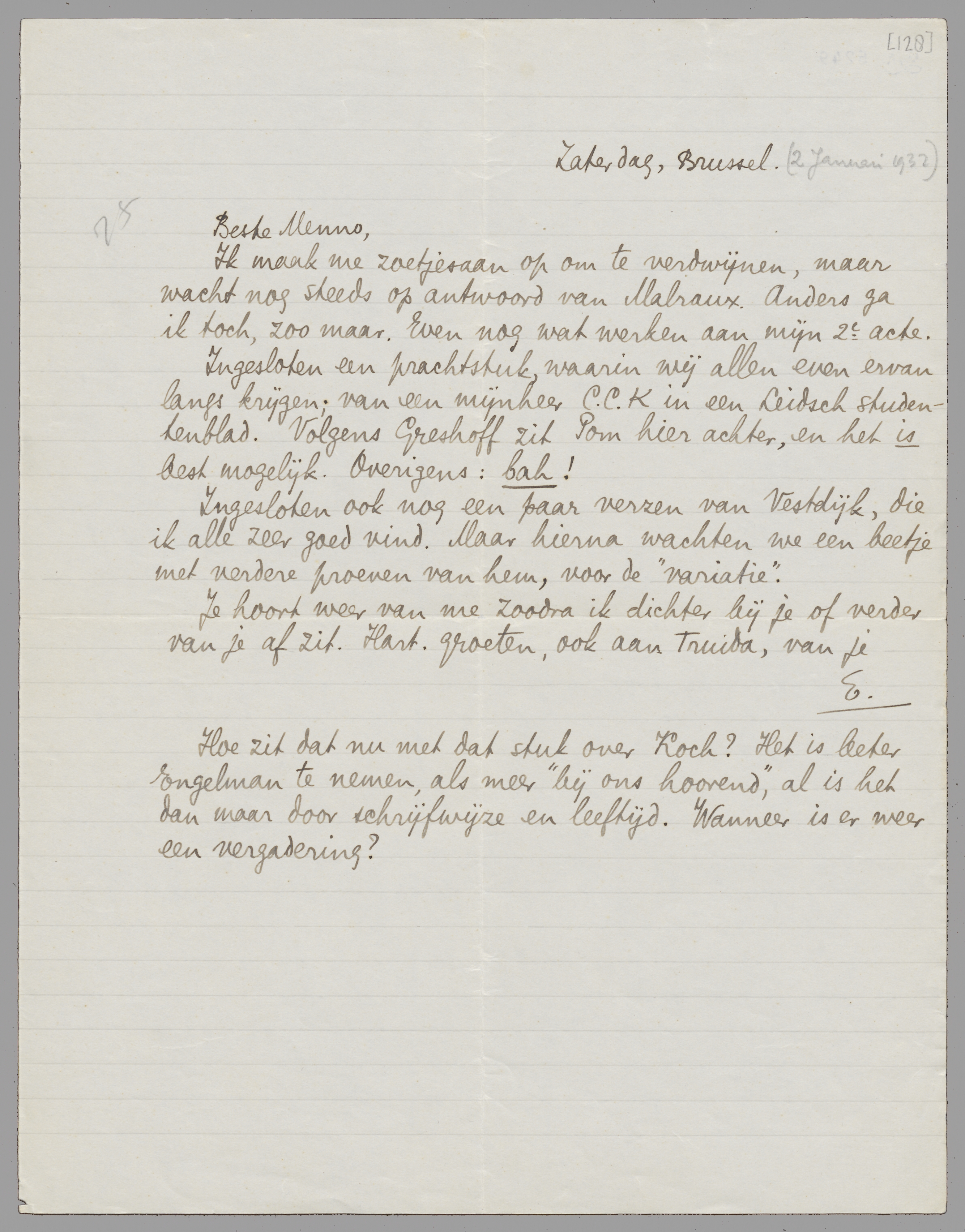 Ingesloten ook nog een paar verzen van Vestdijk, die ik alle zeer goed vind. Maar hierna wachten we een beetje met verdere proeven van hem, voor de ‘variatie’.