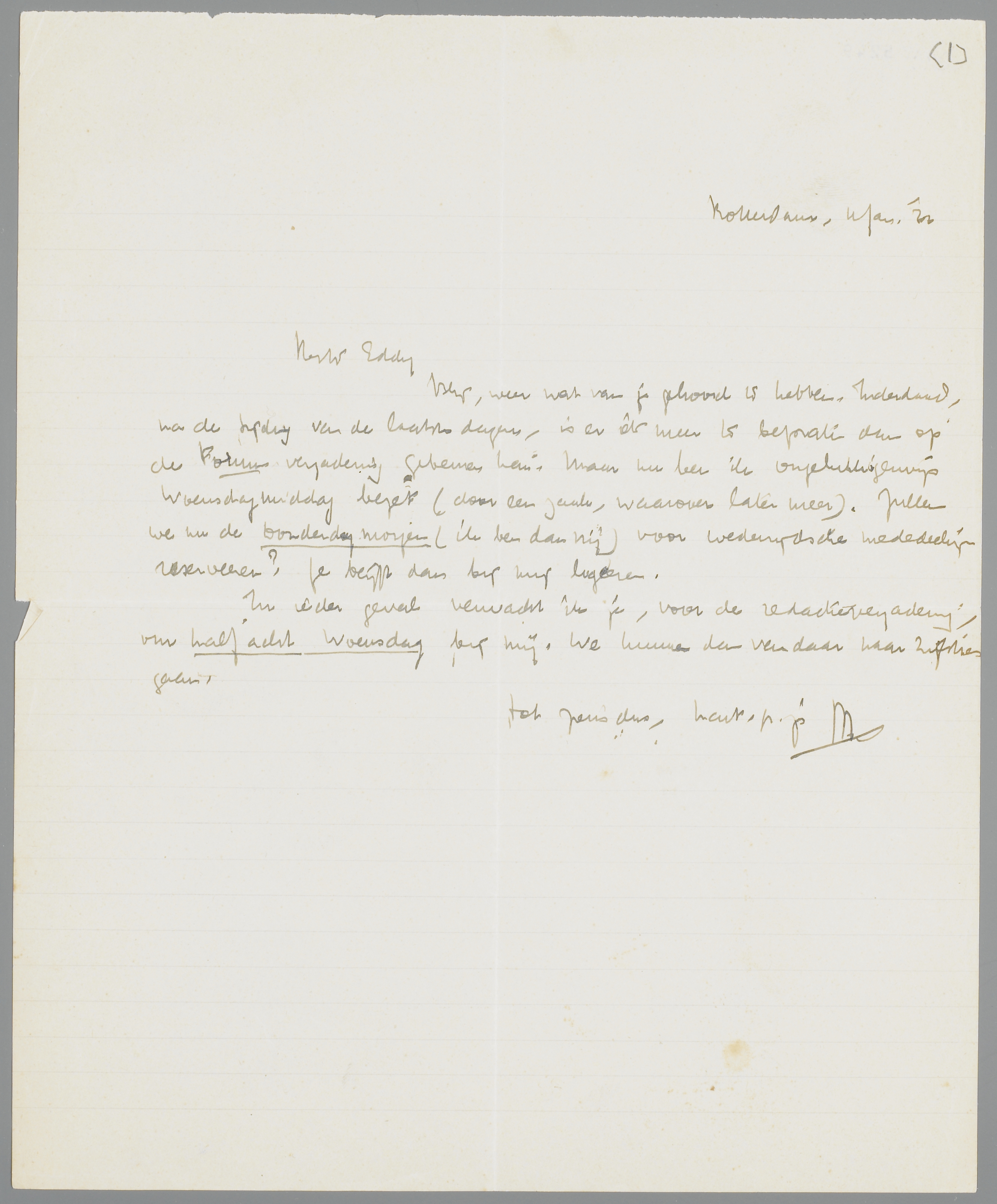 In ieder geval verwacht ik je, voor de redactievergadering, om half acht Woensdag bij mij. We kunnen dan vandaar naar Zijlstra gaan. Tot ziens dus, hart. gr. je