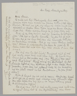 B. zie ik op deze manier wel erg ‘tusschen de bedrijven door’. Ook dat is hardly bearable. En jou zie ik niet. Ik wou dat je me eens wat van die bewuste Zaterdag in Amsterdam vertelde. Heb je me naar Voorburg geschreven? Bouws is uitgezonden om daar de post op te halen, maar zal niet hier zijn voor straks 8 uur. Het is nu 6.