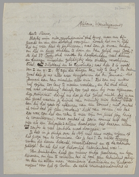 Schrijf spoedig weer. Ik antwoord je later nog wel eens over je Schopenhaueriaansch-menschelijk schrijven aan Maurice, bv. als jij Bep beantwoord zal hebben. Onze gedachtenwisseling hier putte mij n.l. zeer uit, en mijn conclusie was heusch (zooals ik aan Ant schreef) dat jullie, jij en Maurice, dan maar moesten ontsnappen aan jullie eigen gevaren: hij geen ‘philister,’ jij geen ‘querulant’.