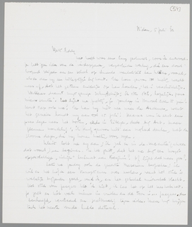 Het heeft weer eens lang geduurd, voor ik antwoord. Je hebt geen idee van de verslappende, verpestende werking, die een doodloopend seizoen aan een school op iemands mentaliteit kan hebben, vooral, als er dan nog een hittegolfje bij komt. Ik kom gewoon tot niets, wacht maar af, tot het geteem eindelijk op kan houden; het is verschrikkelijk. Verklaar daaruit mijn geringe schrijfdrift; ik sta stil, hopelijk ‘pour mieux sauter’. Het lijkt me prettig, je Zondag in Brussel even te zien! Komt Bep ook mee? Ik kan nog niet mee naar de Ardennen, want het gemeier houdt nog aan tot 15 Juli! Daarna wou ik eerst een paar dagen naar het Oosten, deels in Eibergen, deels bij Ant. Maar plannen mondeling; ik durf gewoon niet aan vrijheid denken, met de sloome dagen, die nog komen moeten, voor oogen.