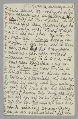 We vonden eindelijk een appartement, in Bellevue-Meudon (vlak bij Van Schendel), in een allerliefste laan, geheeten: Rue du 11 Novembre 1918! Vanaf 15 Sept. a.s. is dat ons adres. We zijn nu 3 dagen hier; Dumay kwam vanmorgen, ik lees erin wat ik lezen kan, opdat Bep het overmorgen meenemen kan naar Holland. Daarna schrijf ik je erover. - Ik zond naar Rotterdam 1 ing. ex. van B.G. aan E. voor Truida en liet jou een geb. ex. sturen door Stols uit Maastricht (hij was ditmaal erg karig met zijn auteursexx!) Ook Wim kreeg het beloofde fraais, hoezeer zijn zwijgzaamheid mij ook ‘an evil omen’ lijkt. O ja, zeg: lees Een Bloempje a/h Eind over voor de verhouding Bennie - Lajos; die ‘in een nootenschaal’ die van Andreas - Van Haaften is - met dezelfde ‘overwinning’ van Bennie Andreas aan het eind! - Ik stuur je vandaag, om bij de andere boeken te leggen, een door mij van illustraties voorzien ex. van een boek van Mérimeé, dat ik een van zijn beste vind - wat expres ‘droog’ maar uitstekend geschreven en boeiend qua verhaal; misschien net iets voor je om nog als vacantielectuur te genieten. Nu, spoedig meer. Hartelijk je