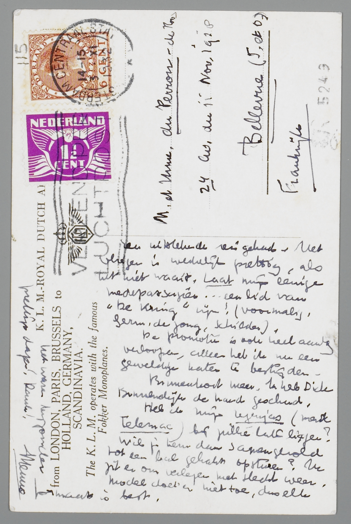 Een uitstekende reis gehad. Het vliegen is werkelijk prettig, als het niet waait. Laat mijn eenige medepassagier... een lid van De Kring zijn! (voormalig, Germ. de Jong, schilder).