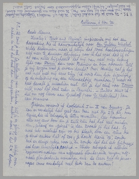 Nu, de beurt is aan jou. Schrijf gauw. Hartelijke groeten van ons beiden (Bep heeft je gezegd dat er van een overjas hier niets te bekennen is?); de hand van je