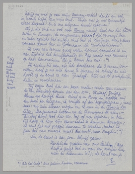 Die fl. 200.- voor Zijlstra zal je wel niet zoo direct bijeen krijgen. Wat geeft Nijkerk? Je kan ook probeeren bij Rademacher Schorer, zelf of door Marsman. Schrijf er Marsman maar over. Ik heb de pest in dat ik ook niet een gldn of 50 kan bijdragen, maar het gaat werkelijk niet; ik moest een oude rekening bij Boosten en Stols afdoen (half) en allerlei rekeningen zijn op til. Nu, ik hoop je spoedig weer eens te lezen over het niet verouderde in deze brieven. (Die eerste had ik bestemd om weg te houden of anders te schrijven, maar de tijd ontbreekt me.) - Hartelijke groeten, ook van Bep, een hand van je