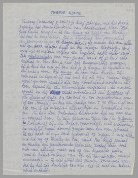 Gisteren verzond ik hoofdstuk I en II van Dumay. Je zou er werkelijk héél goed aan doen met die 2 1/2 blz. over Marie, die ik schrapte, te laten vervallen; lees trouwens alles nog eens door en je zult zien dat het veel minder een ‘gehang’ en ‘getrek’ is, dan zooals jij het had. Er moet iets mislukt zijn op die plaats, door een scène die je eerst anders had of zoo; je houdt Marie ‘op’, zonder dat er eenige reden voor is, èn zonder dat het iets bijdraagt tot haar innerlijk portret. - Verder schrapte ik allerlei regisseurs-notities van nògmaals flonkerende ringen, nògmaals glimlachende menschen, enz. De lezer ziet de personages soms werkelijk veel beter dan de auteur!