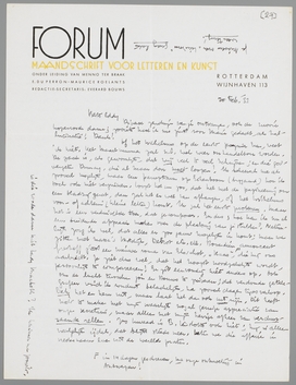 Wat de Liaisons betreft: uitstekend, maak er een brief van aan mij, zooals het geval dus ook was ongeveer. Ik heb n.l. voortdurend op een goede vorm zitten peinzen, maar ik vond geen reden, om mijzelf in dezen als gelijkwaardige tegenstander naar voren te brengen, waar het gros van de ideeën van jou afkomstig was. Hierbij zend ik je dus de betreffende brieven en ook mijn opmerkingen, die je voor me overschreef. Veronderstel vooral, als je de brief omwerkt, dat de meeste menschen hier even feitelijk op de hoogte moeten worden gebracht van de situatie Valmont-Merteuil!