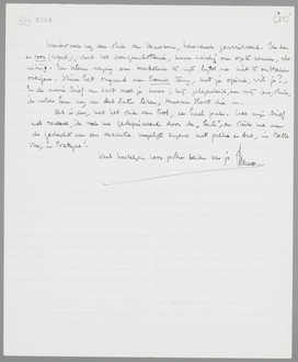 Hierbij ook nog een stuk van Marsman, kersversch gearriveerd. Ik ben er voor (April), vind het donquichotterie, maar aardig om op te nemen, als uiting. Een kleine neiging om martelaar te zijn lijkt me niet te ontbreken overigens. Stuur het omgaand aan Bouws terug, met je opinie, wil je? - En de mooie brief van Last moet je maar (bij gelegenheid) aan mij terugsturen, ik wilde hem nog aan Ant laten lezen; Marsman sloot die in.