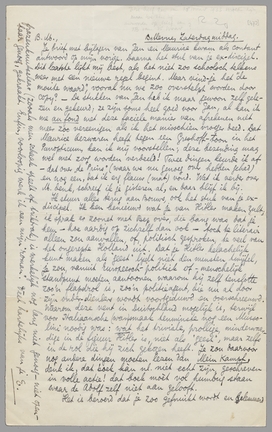 Het is beroerd dat je zoo gefnuikt wordt en belemmerd door je schoolplichten; in een anderen tijd zou ik zeggen: wees nu maar moedig, ga weg en ga ook dat ongerepte-land-ter-zij-van-alles voor een paar jaren uit - maar nu moet ik met hopen en vreezen tegelijk zelf aan een baantje denken, zooals jij er dan een verwerpen zou! de ‘goede raad’ is ditmaal dus werkelijk niet aan mij.