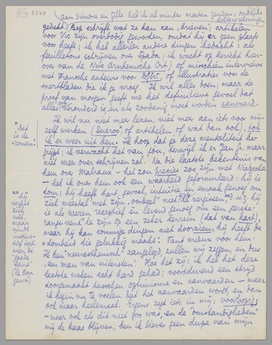 P.S. Je weet niet hoe reusachtig verlicht ik mij zal voelen als deze brief en het klad van mijn (voorloopig?) laatste essay naar je toe zijn; ik voel mij morgen misschien vol vuur om mij op de ‘practische slimheden’ toe te leggen!