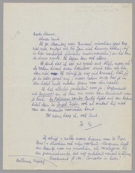 Ik schrijf o, zulke mooie brieven voor de Prov. Pers! - Misschien ook mijn voorland. Marsman heeft een baantje voor me, misschien, als verslaggever bij een provinciekrantje, dat nog onbekend wenscht te blijven. Tractement fl. 160. Corrector is beter!