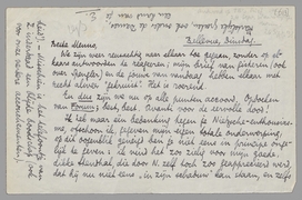 - Terwijl ik hieraan bezig ben, komt je 2e brief. Ik ben zeer blij met je waardeering en zal je het stuk spoedig overgetypt en opgewerkt (er moeten nog een paar ideeën bij) terugsturen. De ‘smeerlapperij’ zal ik door een doeltreffender term vervangen; ik bedoelde er overigens géén schurkachtigheid mee, maar oneerlijkheid, bijna in den zin van Thelen. Camy is de Fransche Cornelis Veth. (Zal ik dàt en passant erbij zetten?)