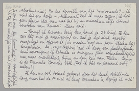 Ik heb maar één bedenking tegen je Nietzsche-enthousiasme, ofschoon ik, gegeven mijn eigen totale onderwerping, op dit oogenblik geneigd ben je niet eens in principe ongelijk te geven: ik vind het zoo zielig voor mijn goede, dikke Stendhal, die door N. zelf toch zoo geapprecieerd werd, dat hij nu niet eens ‘in zijn schaduw’ kan staan, en zelfs ‘absoluut niet’. En dat terwille van het ‘universeele’! - ik vind dit een beetje... ‘tellurisch’, zal ik maar zeggen (ik heb geen flauw idee van wat dat is) en misschien zelfs ietwat verstoken van ‘humor’. Maar soit.