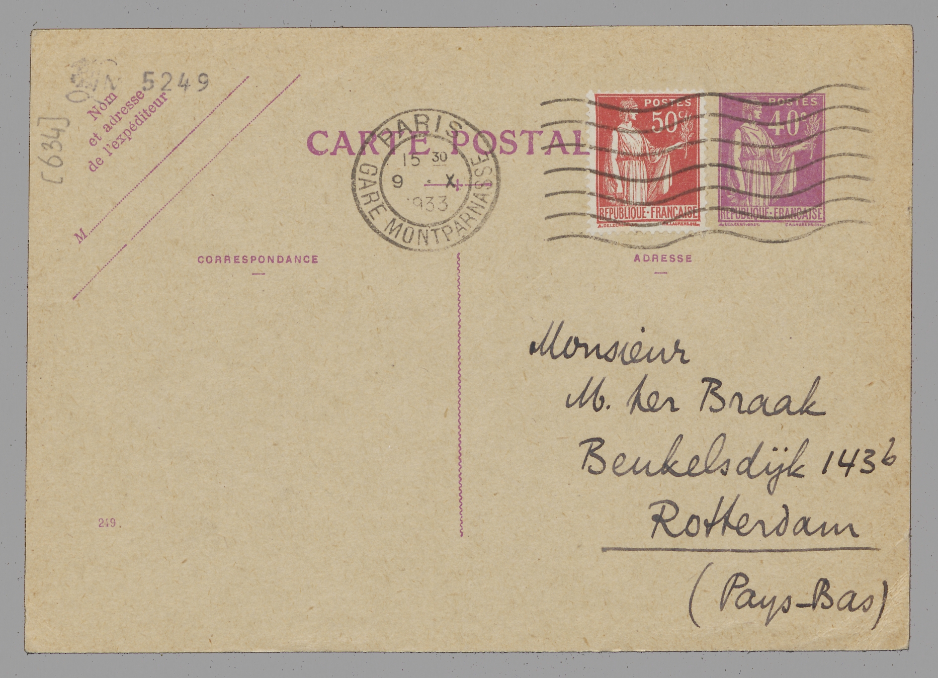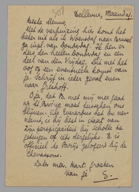 O ja, dat B. met mij mee gaat nr. St. Brieuc moet tusschen ons blijven. Als Everardus het bv. verneemt, is hij best in staat van zijn perspicaciteit bij Scholte te getuigen of iets dergelijks. B. is officieel te Parijs gelogeerd bij de Chevassons.
