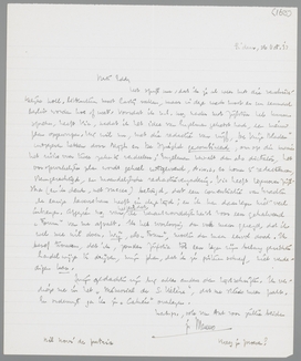 Het spijt me, dat ik je al weer met die verschrikkelijke holl. litteratuur moet lastig vallen, maar in deze week moet er nu eenmaal beslist worden hoe of wat. Voordat ik n.l. nog nader met Zijlstra heb kunnen spreken, heeft Vic, nadat ik het idee van Engelman geketst had, een nieuw plan opgeworpen. Hij wil nu, met die redactie, van vijf, De Vrije Bladen uitgegeven hebben door Nijgh en De Spieghel gecombineerd, om op die manier het risico over twee zaken te verdeelen; Engelman vervalt dan als dictator, het oorspronkelijke plan wordt geheel uitgevoerd, d.w.z. er komen 5 redacteuren, stemgerechtigd, en maandelijksche redactievergadering. Vic heeft tegenover Zijlstra (en ik denk, met succes) betoogd, dat een concentratie van krachten de eenige levenskans heeft in deze tijd; en ik kan daartegen niet veel inbrengen. Afgezien nog van het feit, dat de verantwoordelijkheid voor een gehalveerd Forum van me afvalt. Ik heb voorloopig dan ook maar gezegd, dat ik wel mee wil doen. Wij, als Forum, moeten dan maar eervol dood. Ik besef trouwens, dat ik, zonder Zijlstra tot een tegen zijn belang gerichte handelwijze te drijven, mijn plan, dat ik je gisteren schreef, niet verdedigen kan.