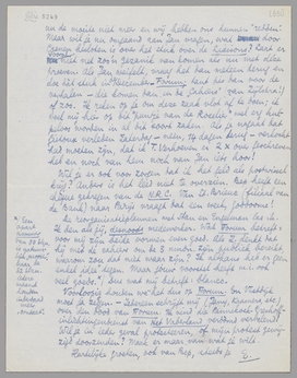 Je moet eens opletten wanneer deze brief aankomt. Ik doe hem nu in de bus, morgen, dus Zaterdag, gaat hij om ± 1 uur van hier - ik geloof dat hij dan 1 dag erover doet om tot Le Légué te komen (het postkantoor van Le Plérin) daarna nog 1 volle dag tot St. Brieuc! Ik begrijp er anders niets van dat ik op allerlei brieven in zoolang geen antwoord krijg, terwijl het van daar naar hier toch betrekkelijk vlug gaat (2 dagen maximum, ook uit Holland).