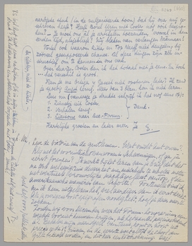 Ik vind het ook heerlijk dat die lomperd van een Scholte nu toch af moest sjeezen. Wil je 's Gravesande vast voor me bedanken (als je hem ziet) over het alleraardigste stuk (in de vulgariseerde toon) dat hij over mij geschreven heeft? Heeft Borel Uren met Coster nog ooit besproken? - Je moet ons àl je artikelen toezenden, vooral in den eersten tijd, alsjeblieft! Wij blaken van verlangen dààrnaar!
