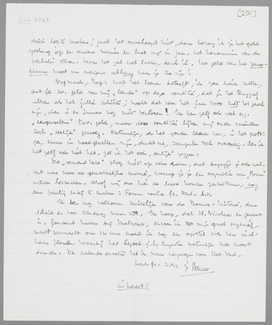 Nogmaals, Bep: wat het leenen betreft, ik zou liever willen, dat je ev. geld van mij ‘leende’ op deze conditie, dat je het teruggaf alleen als het jullie schikte; mocht dat voor het jaar 2000 niet het geval zijn, dan is er immers nog niets verloren! Ik ken zelf ook wel z.g. ‘eergevoelens’ t.o.v. geld, maar deze condities lijken mij onder vrienden toch ‘eerlijk’ genoeg. Natuurlijk, als het zonder leenen kan, is het prettiger, maar in noodgevallen zijn, dunkt me, scrupules toch overbodig. Als ik het zelf ook niet heb, zal ik het ook ‘eerlijk’ zeggen.