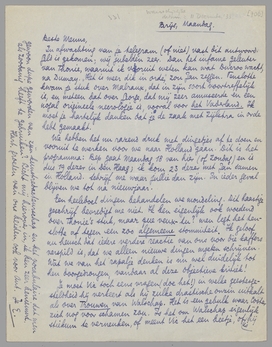 We hebben het nu razend druk met dingetjes af te doen en vooruit te werken voor we naar Holland gaan. Dit is het programma: Bep gaat Maandag 18 van hier (of Zondag) en is dus 19 dezer in Den Haag; ik kom 23 dezer met Jan samen in Holland. Schrijf me waar jullie dan zijn. In ieder geval blijven we tot na nieuwjaar.