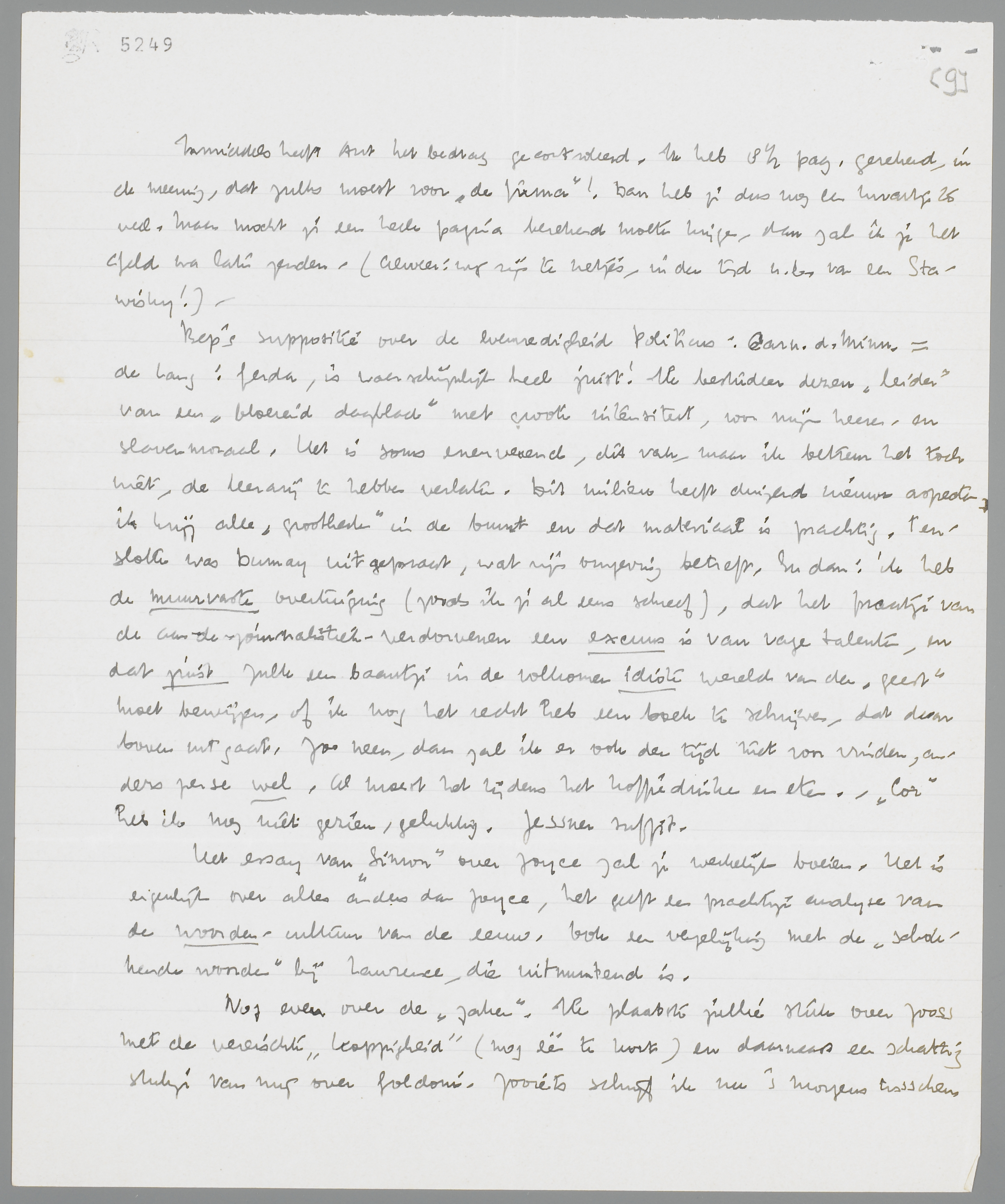 Inmiddels heeft Ant het bedrag gecontroleerd. Ik heb 8½ pag. gerekend, in de meening, dat zulks moest voor ‘de firma’! Dan heb je dus nog een kwartje te veel. Maar mocht je een heele pagina berekend moeten krijgen, dan zal ik je het geld na laten zenden. (Alweer: wij zijn te netjes, in den tijd n.b. van een Stawisky!) -