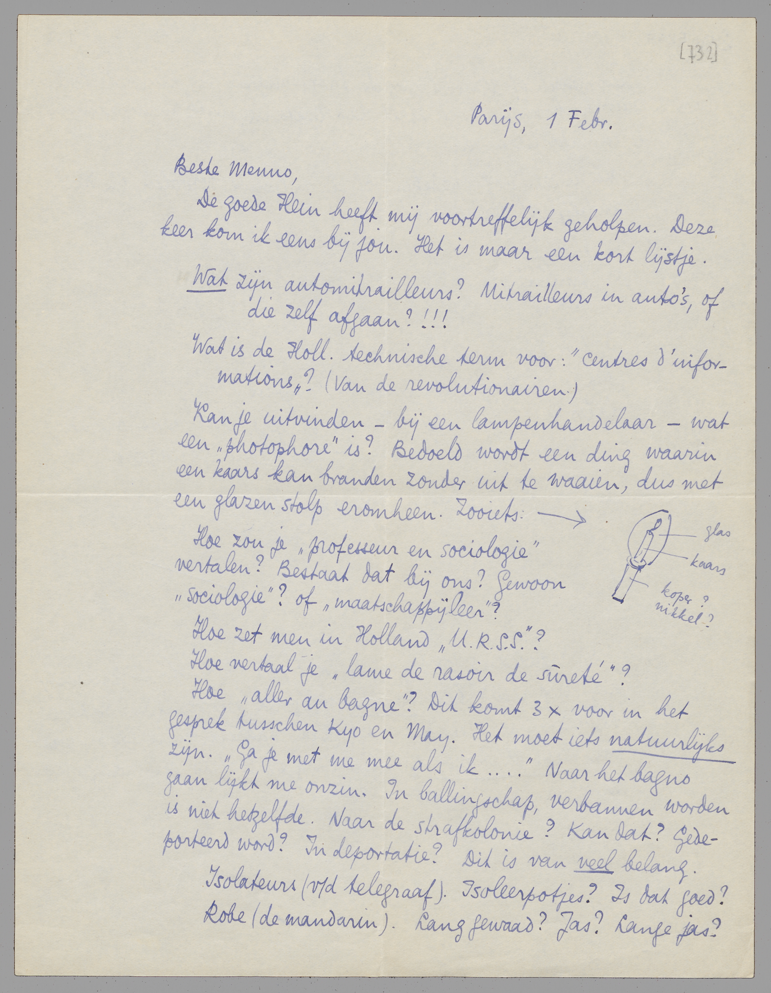 Hoe ‘aller au bagne’? Dit komt 3 × voor in het gesprek tusschen Kyo en May. Het moet iets natuurlijks zijn. ‘Ga je met me mee als ik...’ Naar het bagno gaan lijkt me onzin. In ballingschap, verbannen worden is niet hetzelfde. Naar de strafkolonie? Kan dat? Gedeporteerd word? In deportatie? Dit is van veel belang.